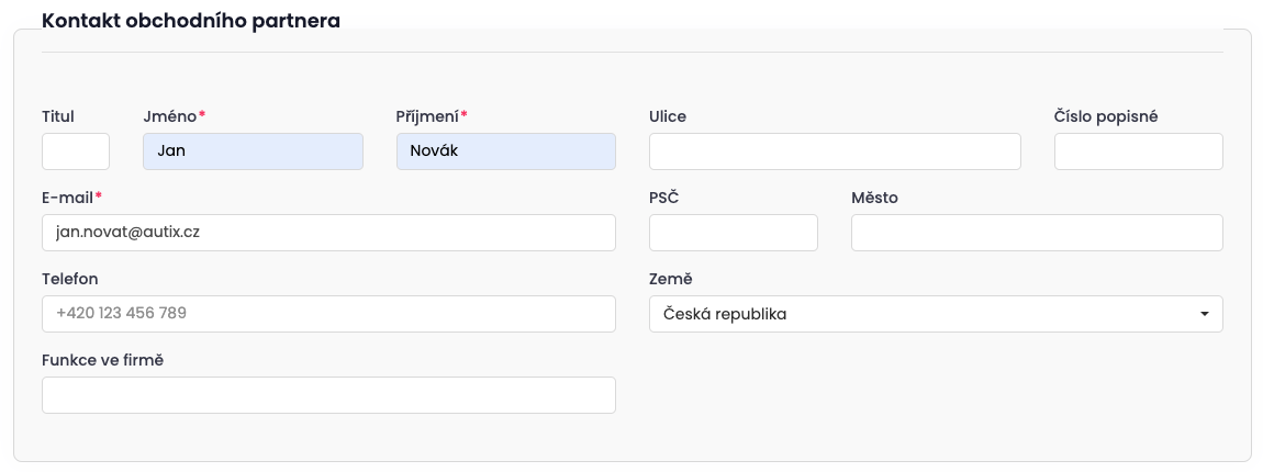 Zobrazí se Vám formulář (formulář je totožný, jako při přidání obchodního partnera - firmy).